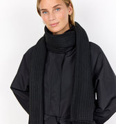 SELANA 5 Scarf is made from 50% Recycled Polyester, 37% Polyester, 10% Wool, and 3% Elastane. It features a ribbed texture that adds depth and warmth. Pair it with a cozy sweater or a sleek coat for added warmth.