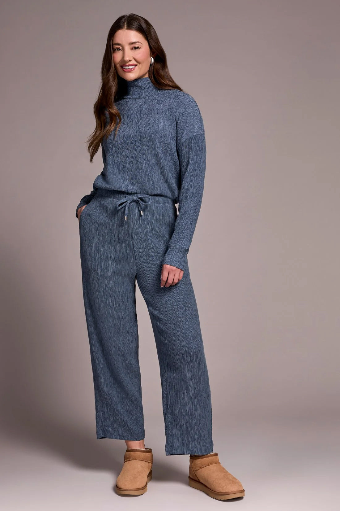 Channel casual sophistication in these barrel-leg pants, designed for a relaxed yet polished look. The tapered hem adds a refined touch, while the two-tone crinkle knit fabric brings rich texture and visual depth. A pull-on waistband ensures effortless wear, making them the perfect balance of comfort and style.
