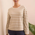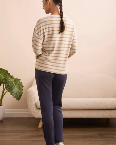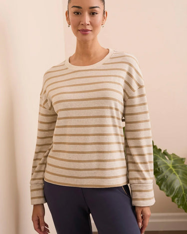 Step into ultimate comfort with this cozy brushed knit top, featuring a timeless striped pattern with a hint of nautical charm. The ultra-soft fabric makes it a perfect everyday favorite, while a classic crew neckline and cuffed sleeves complete the look with effortless ease.