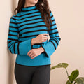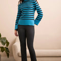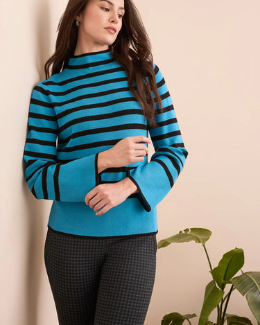Embody effortless elegance with this striped sweater, featuring a warm funnel neckline that exudes sophistication. The long flare sleeves offer a graceful, flowing silhouette, while the soft spun rayon provides an indulgent, comfortable feel. This trendy piece seamlessly elevates your casual wardrobe, adding a refined yet relaxed touch to your everyday style.