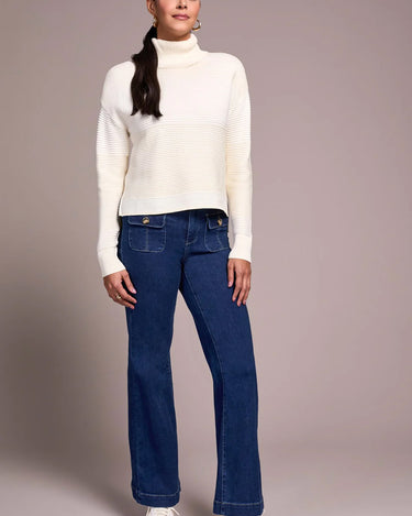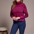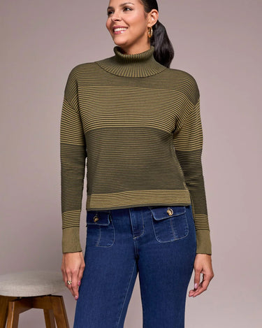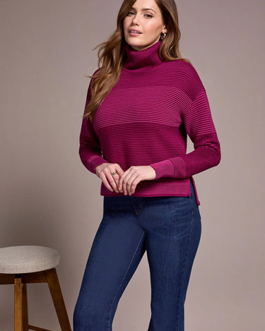 Wrap yourself in warmth and style with this elevated sweater, crafted from plush two-tone ottoman yarn. The tall turtleneck and long sleeves provide cozy coverage, while the hi-low hem with side slits adds a touch of modern flair and ease of movement. Designed to elevate your cooler-weather wardrobe, this piece combines comfort and sophistication in a unique, effortlessly stylish way.