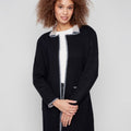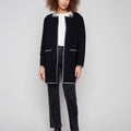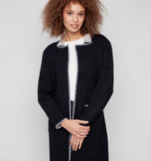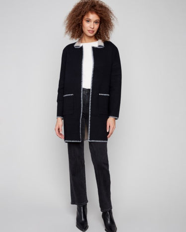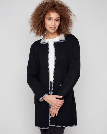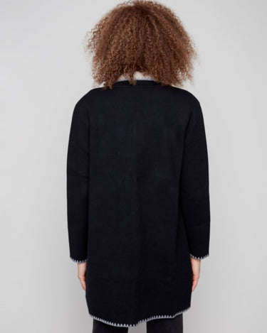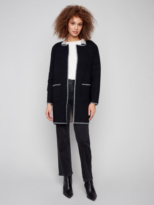 Solid With Contrast Interior Cardigan and Blanket Stitch
