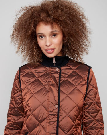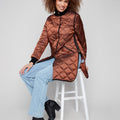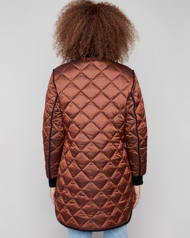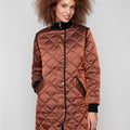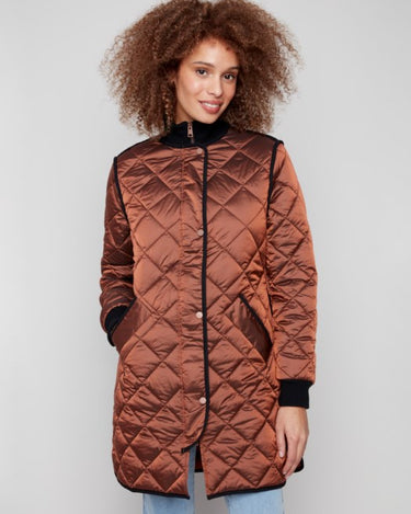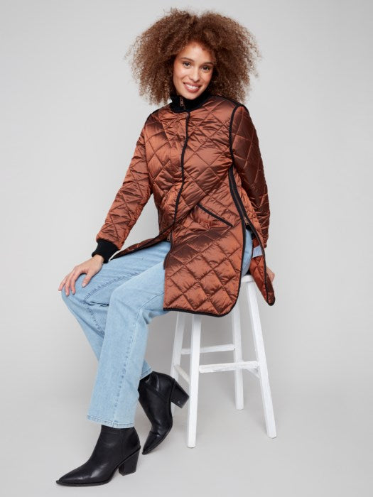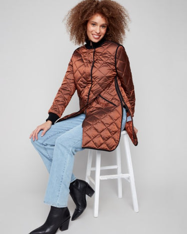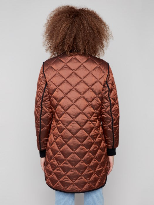 Long Quilted Puffer Jacket With Rib Knit, Zipper-Front And Pockets