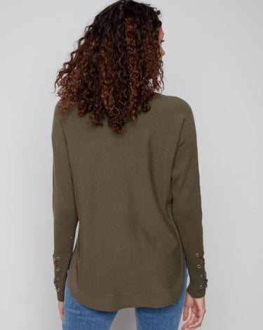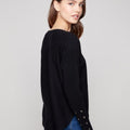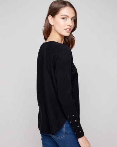 Cuff Lace-Up Detail Sweater With Rounded Hem And Side Pockets