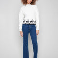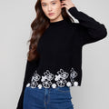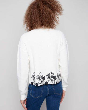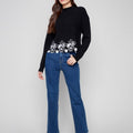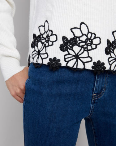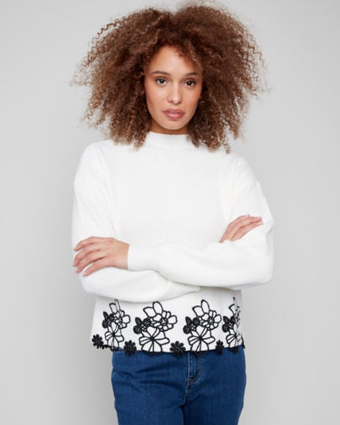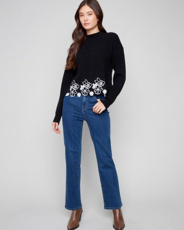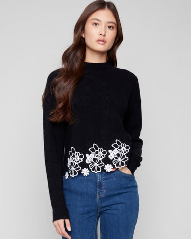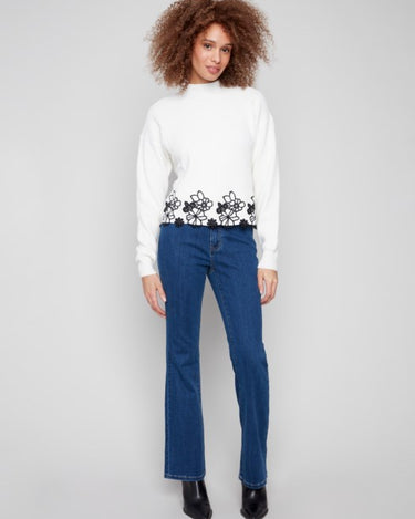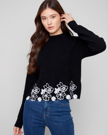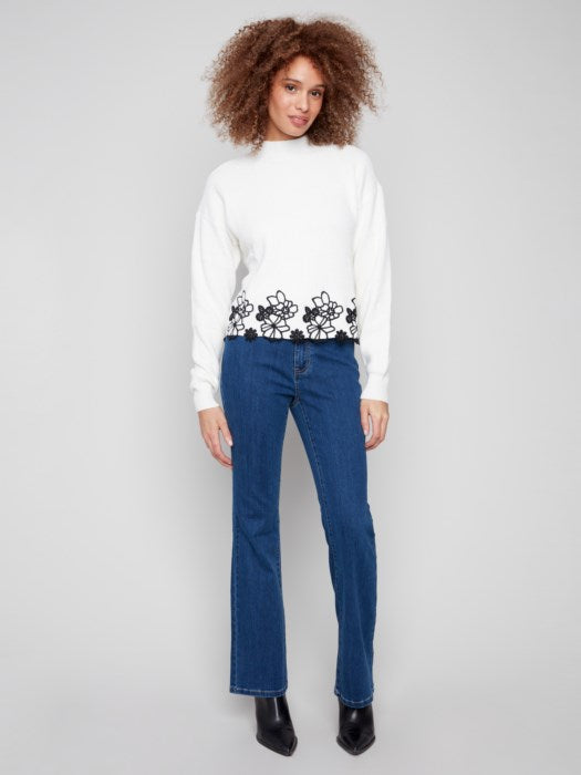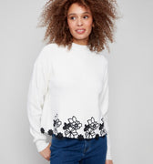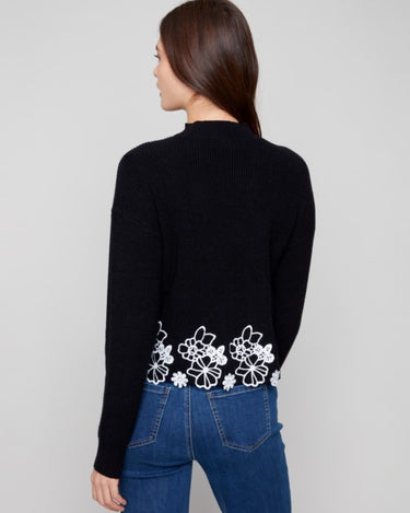 Mock Neck Drop Shoulder Sweater With Lace At Hem